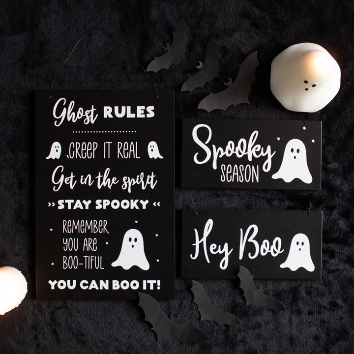 Get in the ‘spirit’ this Halloween season with this set of coordinating signs. Featuring cute ghost designs, these signs are perfect for decorating family-friendly spaces. This set includes two designs: 1 x ‘Hey Boo’ and 1 x ‘Spooky Season’.