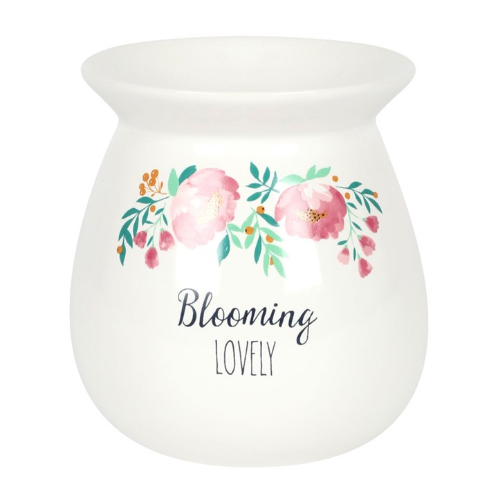 A gorgeous gift set for scenting the home, this item includes a large white ceramic oil burner with a floral ‘Blooming Lovely’ design and a tin of Rose Petal fragranced eco soy wax melts which have been made in the UK. Product Dimensions: H11cm x W10cm x D10cm Packaged Dimensions: H13.5cm x W11cm x D11cm
