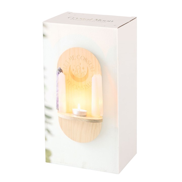 Create a space to recentre and focus with this wooden ‘Let Me Consult My Crystals’ altar shelf. Display crystals, tarot cards, words of affirmation and other items of spiritual significance to aid in manifesting dreams and goals.