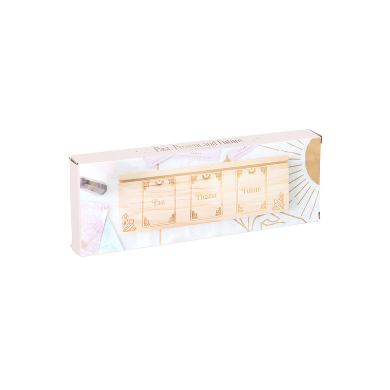 Display tarot card readings with this wooden tarot card stand, complete with a past, present and future design, allowing the meaning of the cards to fully resonate. Whether it’s used for displaying treasured tarot cards for their meaning or their unique design, this piece will add mystical allure to any home.