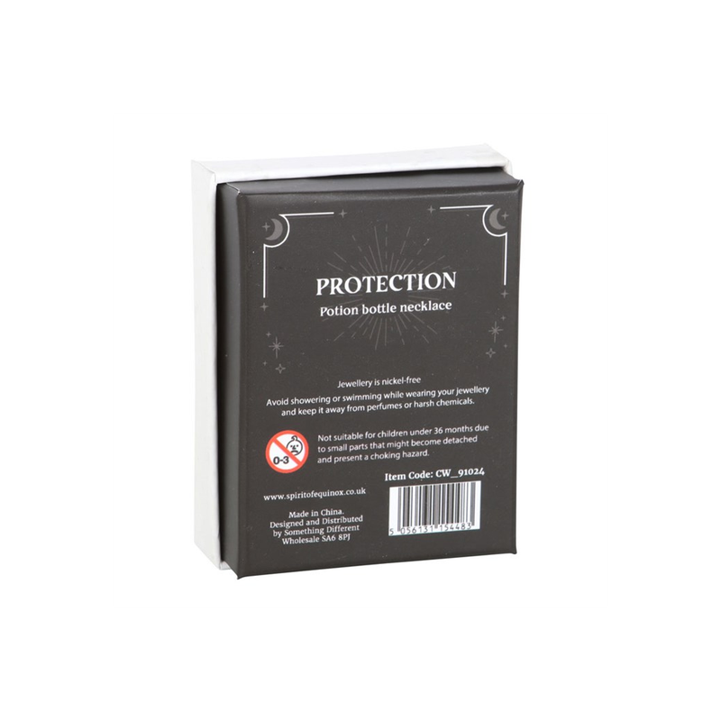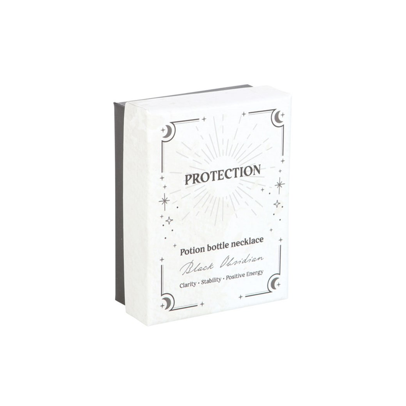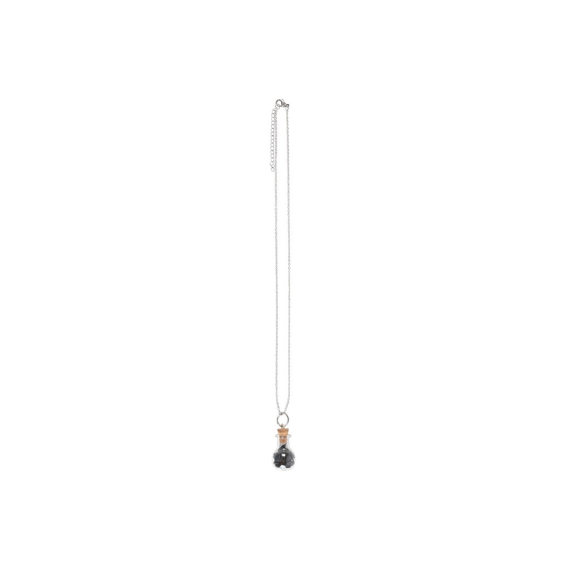 Give the gift of crystal magic with this miniature potion bottle necklace. With natural black obsidian chips and a cork stopper, this necklace serves as a spellbinding accessory while repelling negative energies and promoting stability. Presented in a matching gift box and perfect for that special witch in your life. Plastic bottle on a nickel-free stainless steel chain.