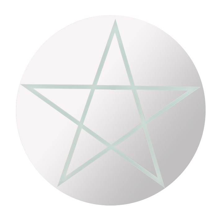 Round wall mirror with a pentagram design. A great accessory for creating a spiritual space in the home. Product Dimensions: H40cm x W40cm x D0.5cm Packaged Dimensions: H45cm x W45cm x D3cm