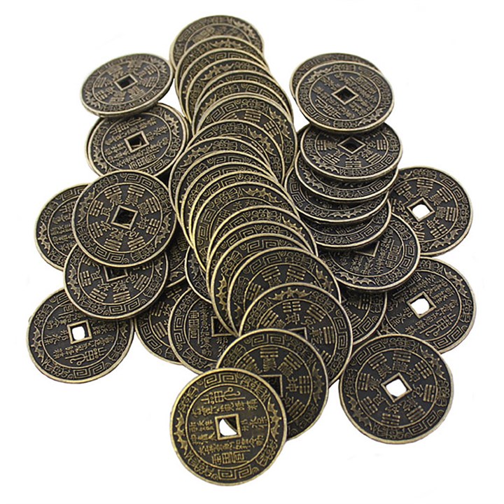 Pack of 50 lucky Feng Shui Chinese coins. Product Dimensions: H0.2cm x W3.5cm x D3.5cm Packaged Dimensions: H3cm x W10cm x D8cm