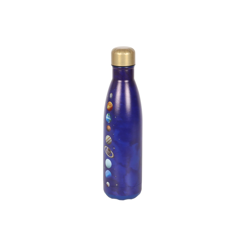 This out-of-this-world blue water bottle features the 9 planets in the solar system and a gold-toned screw-top lid to prevent accidental spills. Perfect for stargazers and dreamers, this water bottle will keep drinks as cool as the mysteries of space. 500ml capacity. Hand wash only. Do not microwave.